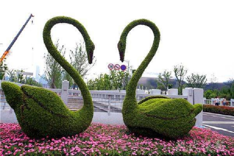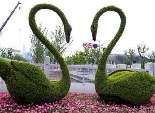綠雕是充滿生機(jī)的“花卉雕塑”,是人類運(yùn)用自然力量創(chuàng)造出的又一園藝文明。綠雕的設(shè)計(jì)主要包括主題構(gòu)思、鋼架結(jié)構(gòu)設(shè)計(jì)、色彩設(shè)計(jì)、植物的選擇及搭配等內(nèi)容。其中,鋼架結(jié)構(gòu)設(shè)計(jì)及植物的選擇最為重要。除了鋼架結(jié)構(gòu)外,設(shè)計(jì)師必須全面了解植物特性,既要保證花期交替的合理運(yùn)用,又要保證株型高低的合理搭配,使作品在展示的初、中、晚階段,伴隨著植物的生長、開花、變色等自然習(xí)性,展現(xiàn)出無比神奇的變化。